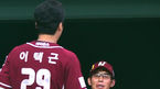 [OSEN=청주,박준형 기자] 8일 오후 충북 청주구장에서 열린 2014 한국야쿠르트 세븐 프로야구 한화 이글스와 넥센 히어로즈의 경기,3회초 넥센 선두타자 이택근이 솔로홈런을 날리고 염경엽 감독의 축하를 받고 있다. 이택근의 타