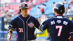 [OSEN=잠실, 정송이 기자] 8일 오후 서울 잠실구장에서 열린 2014 한국야쿠르트 세븐 프로야구 LG 트윈스와 두산 베어스 경기, 1회초 솔로포를 날린 두산 정수빈이 최주환과 하이파이브를 나누고 있다. 7연승에 실패한 LG가 코리 리