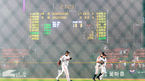 [OSEN=청주,박준형 기자] 8일 오후 충북 청주구장에서 열린 2014 한국야쿠르트 세븐 프로야구 한화 이글스와 넥센 히어로즈의 경기,8회초 갑작스러운 폭우로 경기가 중단되고 있다. 이날 경기에서 한화와 넥센은 송창현과 문성현