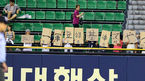 [OSEN=잠실, 지형준 기자] 9일 오후 서울 잠실야구장에서 '2014 한국야쿠르트 세븐 프로야구' LG 트윈스와 두산 베어스의 경기가 열렸다. 두산 김동주 팬들이 외야에서 송일수 감독을 향해 '1군 등록 기준이라는 건?' 이라는 문구를