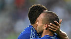 [OSEN=수원, 이대선 기자] 9일 오후 수원 월드컵경기장에서 2014 현대오일뱅크 K리그 클래식 수원 삼성과 울산 현대의 경기가 열렸다. 전반 수원 로저가 골을 성공시키고 산토스와 환호하고 있다. 지난 주말 월드컵 후 재개된 13라
