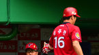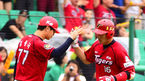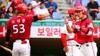 [OSEN=문학, 정송이 기자] 9일 오후 인천 문학구장에서 열린 '2014 한국야쿠르트 세븐 프로야구' SK 와이번스와 KIA 타이거즈의 경기, 1회초 솔로포를 날린 선두타자 김주찬이 그라운드를 돌며 김종국 코치와 하이파이브를 나누고
