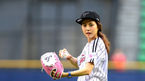 [OSEN=잠실, 지형준 기자] 9일 오후 서울 잠실야구장에서 '2014 한국야쿠르트 세븐 프로야구' LG 트윈스와 두산 베어스의 경기가 열렸다. 경기에 앞서 가수 박지윤이 시구를 하고 있다. LG와 두산이 라이벌전 승리를 위해 각각 우규