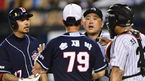 [OSEN=잠실, 지형준 기자] 9일 오후 서울 잠실야구장에서 '2014 한국야쿠르트 세븐 프로야구' LG 트윈스와 두산 베어스의 경기가 열렸다. 9회초 1사 2루에서 LG 최경철과 두산 오재원이 신경전을 벌이자 양팀 선수들이 그라운드에 달