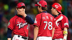 [OSEN=인천, 백승철 기자] 10일 오후 인천 문학구장에서 열린 '2014 한국야쿠르트 세븐 프로야구' SK 와이번스와 KIA 타이거즈의 경기 5회말 2사 3루 박정권의 타석, 김병현의 폭투로 득점한 3루주자 최정이 덕아웃에서 동료들과 하이