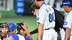 [OSEN=대구,박준형 기자] 10일 오후 대구구장에서 열린 2014 한국야쿠르트 세븐 프로야구 삼성 라이온스와 롯데 자이언츠의 경기, 6회말 1사 1루 삼성 박해민이 롯데 장원준의 투구에 맞고 쓰러졌다. 장원준이 김시진 감독의 격려를