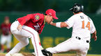 [OSEN=인천, 백승철 기자] 10일 오후 인천 문학구장에서 열린 '2014 한국야쿠르트 세븐 프로야구' SK 와이번스와 KIA 타이거즈의 경기 5회말 1사 1루 김강민 타석, 1루주자 최정이 도루에 성공하고 있다. KIA 김병현이 이날 SK 와이번스