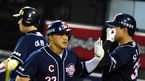 [OSEN=잠실, 지형준 기자] 10일 오후 서울 잠실야구장에서 '2014 한국야쿠르트 세븐 프로야구' LG 트윈스와 두산 베어스의 경기가 열렸다. 5회초 2사 1루에서 두산 홍성흔이 투런포를 날리고 동료선수들과 하이파이브를 하고 있다. LG