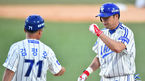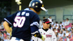 [OSEN=대구,박준형 기자] 10일 오후 대구구장에서 열린 2014 한국야쿠르트 세븐 프로야구 삼성 라이온스와 롯데 자이언츠의 경기, 3회말 1사 2루 삼성 박한이가 선취 1타점 적시타를 날리고 김평호 코치와 하이파이브를 하고 있다