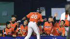 [OSEN=잠실, 최규한 기자] 11일 오후 서울 잠실야구장에서 '2014 한국야쿠르트 세븐 프로야구' 두산 베어스와 한화 이글스의 경기가 열렸다. 5회초 한화 공격 2사 1루 상황 고동진의 1타점 우중간 2루타 때 홈을 밟은 피에가 더그아웃