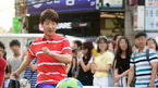 [OSEN=지형준 기자] 소아암 환아 치료비 모금 '슛포러브(Shoot for Love)' 행사가 11일 오후 서울 신촌 스타광장에서 열렸다. 김풍이 페널티킥을 시도하고 있다. 이날 행사에는 전 프로게이머 홍진호, 만화가 김풍, 프로그래머 이두희