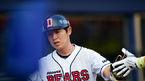 [OSEN=잠실, 최규한 기자] 11일 오후 서울 잠실야구장에서 '2014 한국야쿠르트 세븐 프로야구' 두산 베어스와 한화 이글스의 경기가 열렸다. 1회말 두산 공격 무사 3루 상황 최주환의 선제 1타점 우익수 희생플라이로 홈을 밟은 정