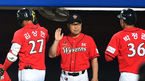[OSEN=대구,박준형 기자] 11일 오후 대구구장에서 열린 2014 한국야쿠르트 세븐 프로야구 삼성 라이온스와 SK 와이번스의 경기, 8회초 1사 1루 SK 김상현이 대타로 나서 2점 홈런을 날리고 이만수 감독의 축하를 받고 있다. 삼성 라이