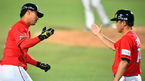 [OSEN=대구,박준형 기자] 11일 오후 대구구장에서 열린 2014 한국야쿠르트 세븐 프로야구 삼성 라이온스와 SK 와이번스의 경기, 8회초 1사 1루 SK 김상현이 대타로 나서 2점 홈런을 날리고 조원우 코치와 하이파이브를 하고 있다. 삼