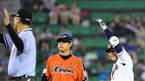 [OSEN=잠실, 최규한 기자] 12일 오후 서울 잠실야구장에서 '2014 한국야쿠르트 세븐 프로야구' 두산 베어스와 한화 이글스의 경기가 열렸다. 7회말 두산 공격 1사 1, 2루 상황 대타 칸투의 삼진 때 3루 도루를 시도한 주자 허경민이