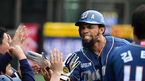 [OSEN=목동, 민경훈 기자] 12일 오후 서울 목동야구장에서 열린 '2014 한국야쿠르트 세븐 프로야구' 넥센 히어로즈와 NC 다이노스의 경기, 4회초 NC 선두타자 테임즈가 우월 솔로 홈런을 날린 후 덕아웃에서 동료들과 하이파이브를