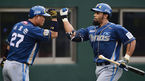[OSEN=목동, 민경훈 기자] 12일 오후 서울 목동야구장에서 열린 '2014 한국야쿠르트 세븐 프로야구' 넥센 히어로즈와 NC 다이노스의 경기, 4회초 NC 선두타자 테임즈가 우월 솔로 홈런을 날린 후 홈에서 이호준과 하이파이브를 하고