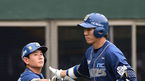 [OSEN=목동, 민경훈 기자] 12일 오후 서울 목동야구장에서 열린 '2014 한국야쿠르트 세븐 프로야구' 넥센 히어로즈와 NC 다이노스의 경기, 2회초 2사 주자 없는 상황에서 NC 모창민이 우월 선취 솔로 홈런을 날린 후 홈에서 전준호 코