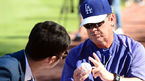 [OSEN=다저스타디움(LA 미국 캘리포니아주), 곽영래 기자] 12일(한국시간) 미국 캘리포니아주 로스앤젤레스 다저스타디움에서 열리는 '2014 메이저리그' LA 다저스와 샌디에이고 파드리스와의 경기에 앞서 맥과이어 코치가 커쇼와