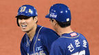 [OSEN=목동, 정송이 기자] 12일 오후 서울 목동야구장에서 '2014 한국야쿠르트 세븐 프로야구' 넥센 히어로즈와 NC 다이노스의 경기가 열렸다. 6회초 2사 만루 NC 조영훈의 2타점 적시타로 홈을 밟은 모창민과 손시헌이 덕아웃으로 향