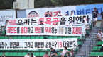 [OSEN=잠실,박준형 기자] 13일 오후 서울 잠실구장에서 열린 2014 한국야쿠르트 세븐 프로야구 두산 베어스와 한화 이글스의 경기,두산 팬들이 김동주의 복귀를 희망하는 걸개를 걸고 응원을 펼치고 있다. 이날 경기에서 두산과