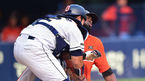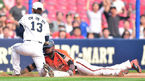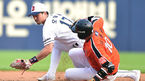 [OSEN=잠실,박준형 기자] 13일 오후 서울 잠실구장에서 열린 2014 한국야쿠르트 세븐 프로야구 두산 베어스와 한화 이글스의 경기,2회초 1사 2,3루 한화 이학준의 내야땅볼때 3루 주자 피에가 홈에서 최재훈 포수에게 태그아웃되고