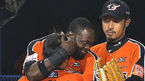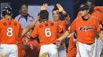 [OSEN=잠실,박준형 기자] 13일 오후 서울 잠실구장에서 열린 2014 한국야쿠르트 세븐 프로야구 두산 베어스와 한화 이글스의 경기 9회초 이닝종료 후 이창열이 동료들의 축하를 받고 있다. 이창열은 이날 데뷔 첫 안타로 역전타를