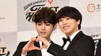 [OSEN=이대선 기자] 14일 오후 서울 목동 SBS 13층 홀에서 '슈퍼주니어M의 게스트하우스' 제작발표회가 열렸다. 슈퍼주니어M 려욱과 성민이 포토타임을 갖고 있다. '슈퍼주니어M의 게스트하우스'는 슈퍼주니어M의 7명(려욱, 규현, 동