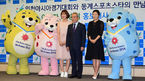 [OSEN=백승철 기자] 14일 오전 서울 중구 프레스센터에서 열린 '2014 인천아시아경기대회 홍보대사 위촉식'에서 박승희, 김영수 조직위원장, 이상화가 인천AG 마스코트와 기념촬영을 하고 있다. 조직위는 오는 9월 개막하는 인천아