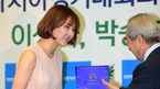 [OSEN=백승철 기자] 14일 오전 서울 중구 프레스센터에서 열린 '2014 인천아시아경기대회 홍보대사 위촉식'에서 박승희가 김영수 조직위원장에게 기념주화를 받고 있다. 조직위는 오는 9월 개막하는 인천아시안게임에 대한 전 국