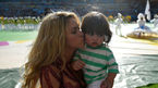 [OSEN=사진팀] 14일(한국시간) 오전 브라질 리우 데 자네이루의 마라카낭 경기장에서 '2014 브라질 월드컵' 결승전 독일과 아르헨티나의 경기가 열렸다. 폐막식 무대에 오르는 샤키라가 아들에게 볼키스를 하고 있다. 리오넬 메시(