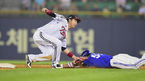 [OSEN=잠실, 백승철 기자] 15일 오후 서울 잠실구장에서 열린 '2014 한국야쿠르트 세븐 프로야구' LG 트윈스와 삼성 라이온즈의 경기 8회초 2사 1루 박석민 타석, 1루주자 박해민이 도루에 실패하고 있다. LG 우완 선발투수 코리 리오