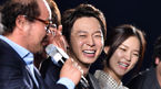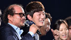 [OSEN=부산, 이대선 기자] 김윤석 박유천 주연의 영화 '해무' 자신만만 초특급 쇼케이스가 15일 오후 부산 해운대 영화의 전당에서 진행됐다. 배우 김상호의 말에 참석한 배우들이 환하게 웃고 있다. '해무'는 만선의 꿈을 안고 출