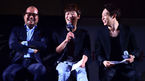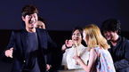 [OSEN=부산, 정송이 기자] 김윤석 박유천 주연의 영화 '해무' 자신만만 초특급 쇼케이스가 15일 오후 부산 해운대 영화의 전당에서 진행됐다. 이벤트에 당첨된 관객들의 반응에 이희준 박유천이 미소짓고 있다. '해무'는 만선의