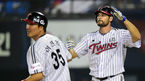 [OSEN=잠실, 백승철 기자] 15일 오후 서울 잠실구장에서 열린 '2014 한국야쿠르트 세븐 프로야구' LG 트윈스와 삼성 라이온즈의 경기 8회말 2사 만루 최경철의 3타점 2루타에 스나이더, 이진영이 홈을 밟고 있다. LG 우완 선발투수 코