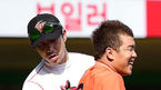 [OSEN=인천, 민경훈 기자] 16일 오후 인천 문학야구장에서 열린 '2014 한국야쿠르트 세븐 프로야구' SK 와이번스와 한화 이글스의 경기 전, SK 조동화가 한화 정근우에게 장난을 치고 있다. 잦은 부상 속 복귀와 전열 이탈을 반복하던