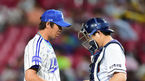 [OSEN=광주, 백승철 기자] 18일 오후 광주 광주-기아 챔피언스 필드에서 열린 '2014 한국야쿠르트 세븐 프로야구 올스타전' 9회초 마운드에 올라온 임창용이 양의지와 이야기를 나누고 있다. 이번 올스타전은 원년부터 33년간 명승