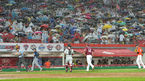 [OSEN=광주, 백승철 기자] 18일 오후 광주 광주-기아 챔피언스 필드에서 열린 '2014 한국야쿠르트 세븐 프로야구 올스타전' 8회초 2사 박병호가 솔로 홈런을 치고 베이스를 돌고 있다. 이번 올스타전은 원년부터 33년간 명승부를 펼