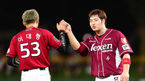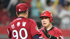 [OSEN=광주, 백승철 기자] 18일 오후 광주 광주-기아 챔피언스 필드에서 열린 '2014 한국야쿠르트 세븐 프로야구 올스타전' 6회 공수교대 시간, 이대형과 박병호가 하이파이브를 하고 있다. 이번 올스타전은 원년부터 33년간 명승부