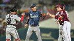 [OSEN=광주, 이대선 기자] 18일 오후 광주 광주-기아 챔피언스 필드에서 열린 '2014 한국야쿠르트 세븐 프로야구 올스타전' 경기 종료 후 양팀 선수들이 인사를 나누고 있다. 웨스턴팀이 18일 광주-기아 챔피언스필드에서 열린 2014