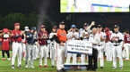 [OSEN=광주, 이대선 기자] 18일 오후 광주 광주-기아 챔피언스 필드에서 열린 '2014 한국야쿠르트 세븐 프로야구 올스타전' 경기 종료 후 9개 구단 감독들이 세월호 희생자 위로 기부금을 적십자에 전달하고 있다. 웨스턴팀이 18일