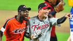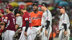 [OSEN=광주, 이대선 기자] 18일 오후 광주 광주-기아 챔피언스 필드에서 열린 '2014 한국야쿠르트 세븐 프로야구 올스타전' 경기 종료 후 동군 피에가 서군 선수들과 이야기를 나누고 있다. 웨스턴팀이 18일 광주-기아 챔피언스필드