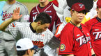[OSEN=광주, 이대선 기자] 18일 오후 광주 광주-기아 챔피언스 필드에서 열린 '2014 한국야쿠르트 세븐 프로야구 올스타전' 경기 종료 후 서군 봉중근과 박병호가 하이파이브를 하고 있다. 웨스턴팀이 18일 광주-기아 챔피언스필드