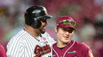 [OSEN=광주, 백승철 기자] 18일 오후 광주 광주-기아 챔피언스 필드에서 열린 '2014 한국야쿠르트 세븐 프로야구 올스타전' 경기 종료 후 박병호와 히메네스가 인사를 나누고 있다. 웨스턴팀이 3년 만에 올스타전 승리를 거두었다.