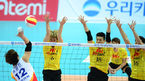 [OSEN=안산, 김경섭 기자] 20일 오후 경기도 안산시 상록수체육관에서 진행된 '2014 우리카드컵 프로배구대회'(이하 코보컵) 남자부 B조 한국전력과 OK저축은행의 경기, 1세트 OK저축은행 이민규, 심경섭, 한상길이 블로킹을 시도하