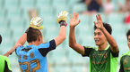 [OSEN=전주, 민경훈 기자] 20일 오후 전주월드컵경기장에서 열린 전북 현대와 상주 상무의 '현대오일뱅크 K리그 클래식 2014' 16라운드 경기, 전반 전북 이동국의 선제골때 함께 세레모니를 펼친 최은성이 박수를 보내고 있다. 이