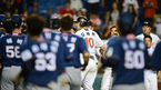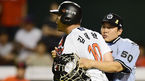 [OSEN=대전, 민경훈 기자] 22일 오후 대전 한밭야구장에서 열린 '2014 한국야쿠르트 세븐 프로야구' 한화 이글스와 NC 다이노스의 경기, 8회말 1사 주자 1,2루 한화 김태완이 NC 김진성의 투구에 몸에 볼을 맞으며 김정국 구심을 밀치