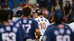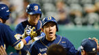 [OSEN=대전, 민경훈 기자] 22일 오후 대전 한밭야구장에서 열린 '2014 한국야쿠르트 세븐 프로야구' 한화 이글스와 NC 다이노스의 경기, 8회말 2사 주자 만루 NC 조영훈의 우익수 오른쪽 2타점 적시타때 홈을 밟은 손시헌과 최재원이