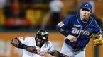 [OSEN=대전, 민경훈 기자] 23일 오후 대전 한밭야구장에서 열린 '2014 한국야쿠르트 세븐 프로야구' 한화 이글스와 NC 다이노스의 경기, 9회말 무사 주자 1루 한화 최진행의 안타때 1루 주자 피에가 2루로 향하며 손에 송구를 맞아 고