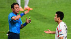 [OSEN=서울월드컵경기장, 최규한 기자] 23일 오후 서울월드컵경기장에서 '2014 현대오일뱅크 K리그 클래식' 17라운드 FC서울과 상주 상무의 경기가 열렸다. 전반 상주 상무 유지훈이 레드카드를 받은 뒤 동료들과 함께 심판에게 어